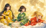 彼女たちはそれぞれ 満月・半月・三日月 をモチーフにした着物を纏い、まるで「月の三姉妹」とも呼べるような幻想的な雰囲気をまとっています。
