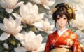 このイラストは、美麗なアニメーション風の華やかさと、物語を感じさせる穏やかな情景がとてもよく合わさった一枚です。