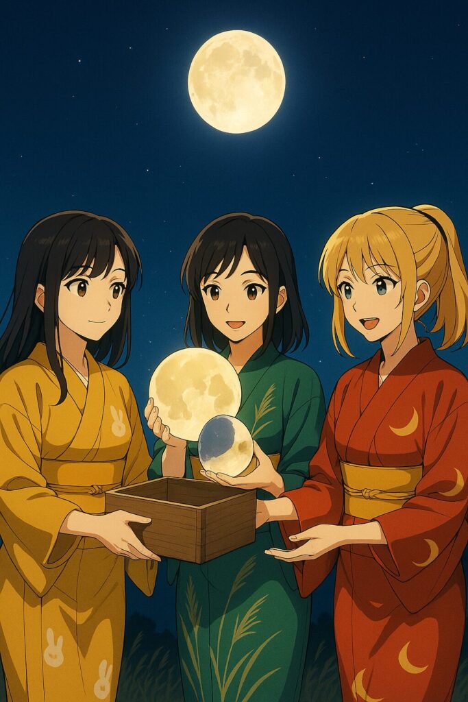 手のひらサイズの月、どれを空に返そう? ― 秋夜に灯る三姉妹のひそやかな相談。
