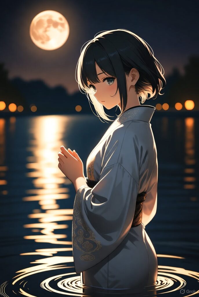 月人 月光に魅かれて──湖面に佇む着物少女の物語