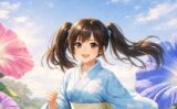 このイラストは、派手なアクションシーンではなく、「心を整える瞬間」を切り取った一枚と言えるでしょう。決断の前、旅立ちの前、自分自身と向き合うために目を閉じる――そんな普遍的な時間が、和の美しさと幻想的な光の演出によって、静かに、そして力強く表現されています。