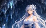 夜空には無数の星が瞬き、淡い天の川が斜めに流れ、静かな宇宙の気配が画面いっぱいに広がります。その中で、彼女の背後にそびえ立つのは、古びた装飾が施された巨大な砂時計。上から下へと落ち続ける砂が、止まることのない「時間」の重さを象徴しているようです。